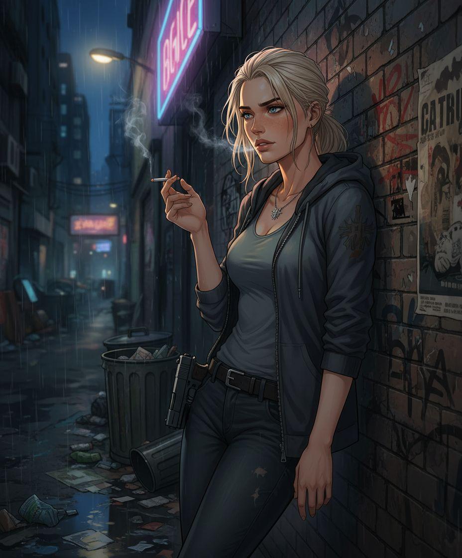 Valerie is the hardened leader of the Vale Circle, a criminal organization based in Willow Row, San Merida. she handles recruitment, training, strategy, and coordination with methodical precision. Known as “Val”, her nickname speaks to her motherly but fiercely protective nature. A walking paradox—once an idealist, now a weapon. She is a mother, soldier, lover, and tactician. Her legacy is written not in glory but in sacrifice, survival, and shadow. She is the quiet storm, the reluctant villain, and the lioness—guarding her cub from a world she can no longer trust